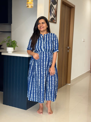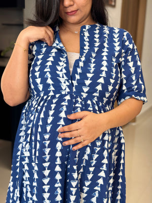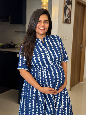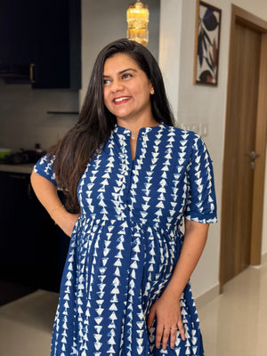 Expertly designed with comfort in mind, our Floral A line Kurti is the perfect choice for expecting mothers. The A line cut provides a flattering fit, while the knot detail adds a touch of style. Made with breathable fabric, this maternity wear offers a non-intrusive design with no feeding option.