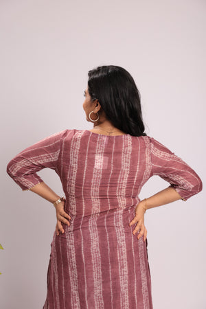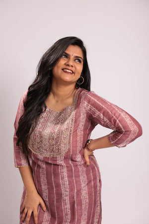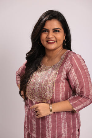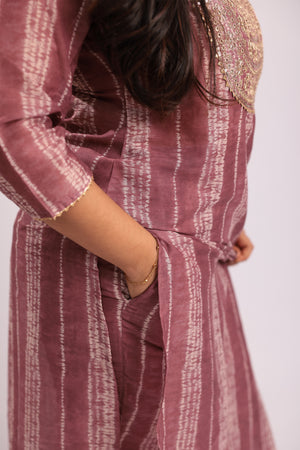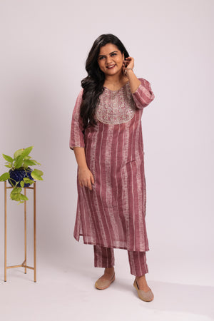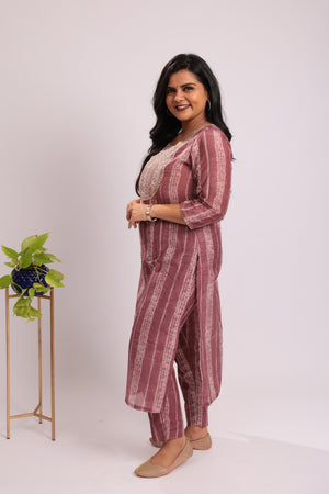 TWKS101 - Wine Stripe Embroidered Silk Blend Kurta Set