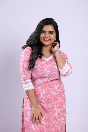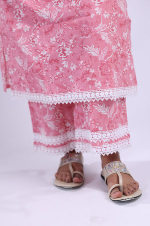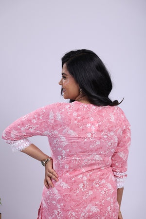 TWKS108 - Pink Floral Cotton Kurta Set with Pants