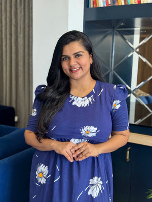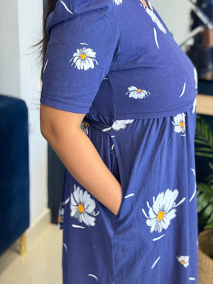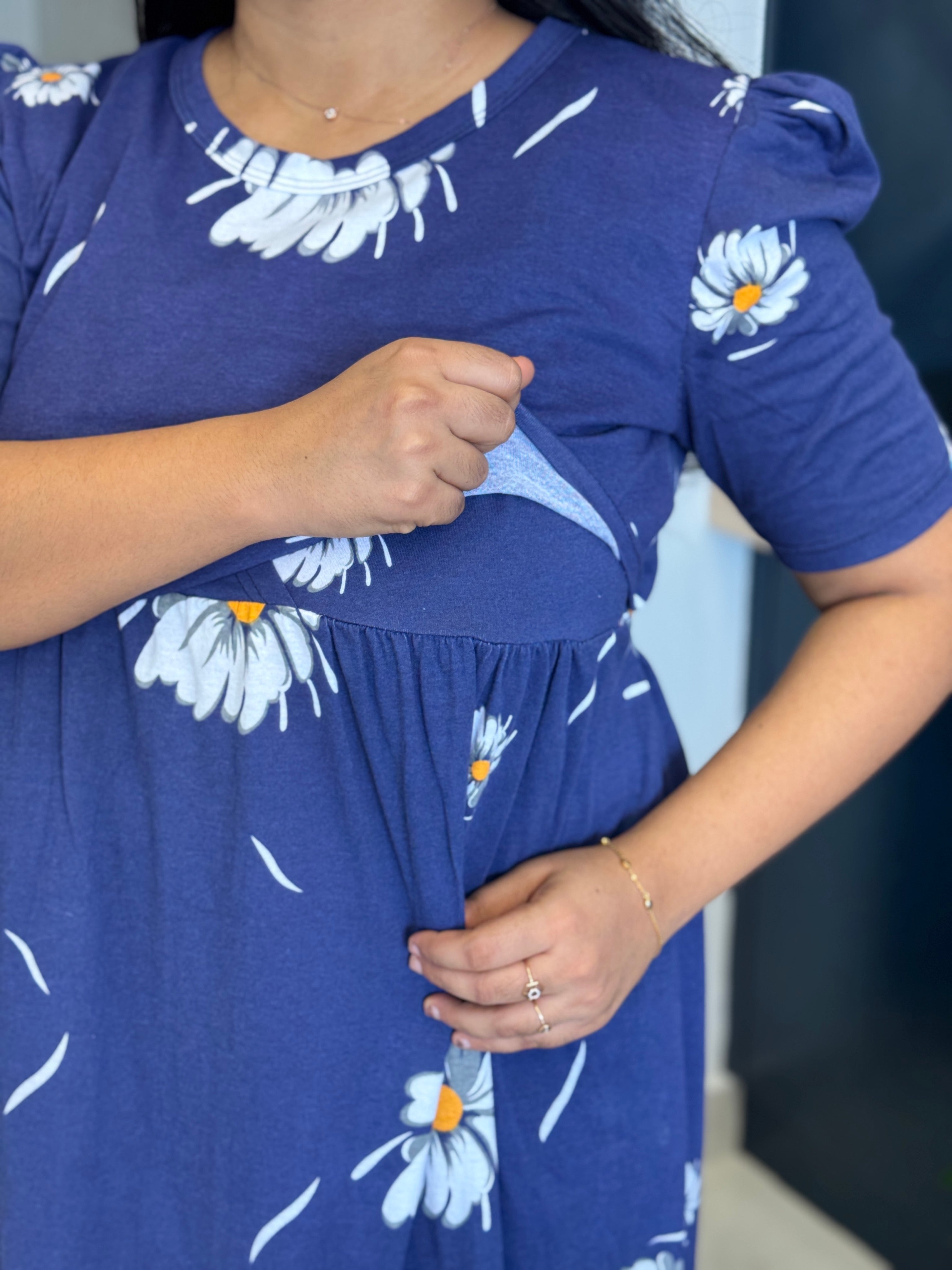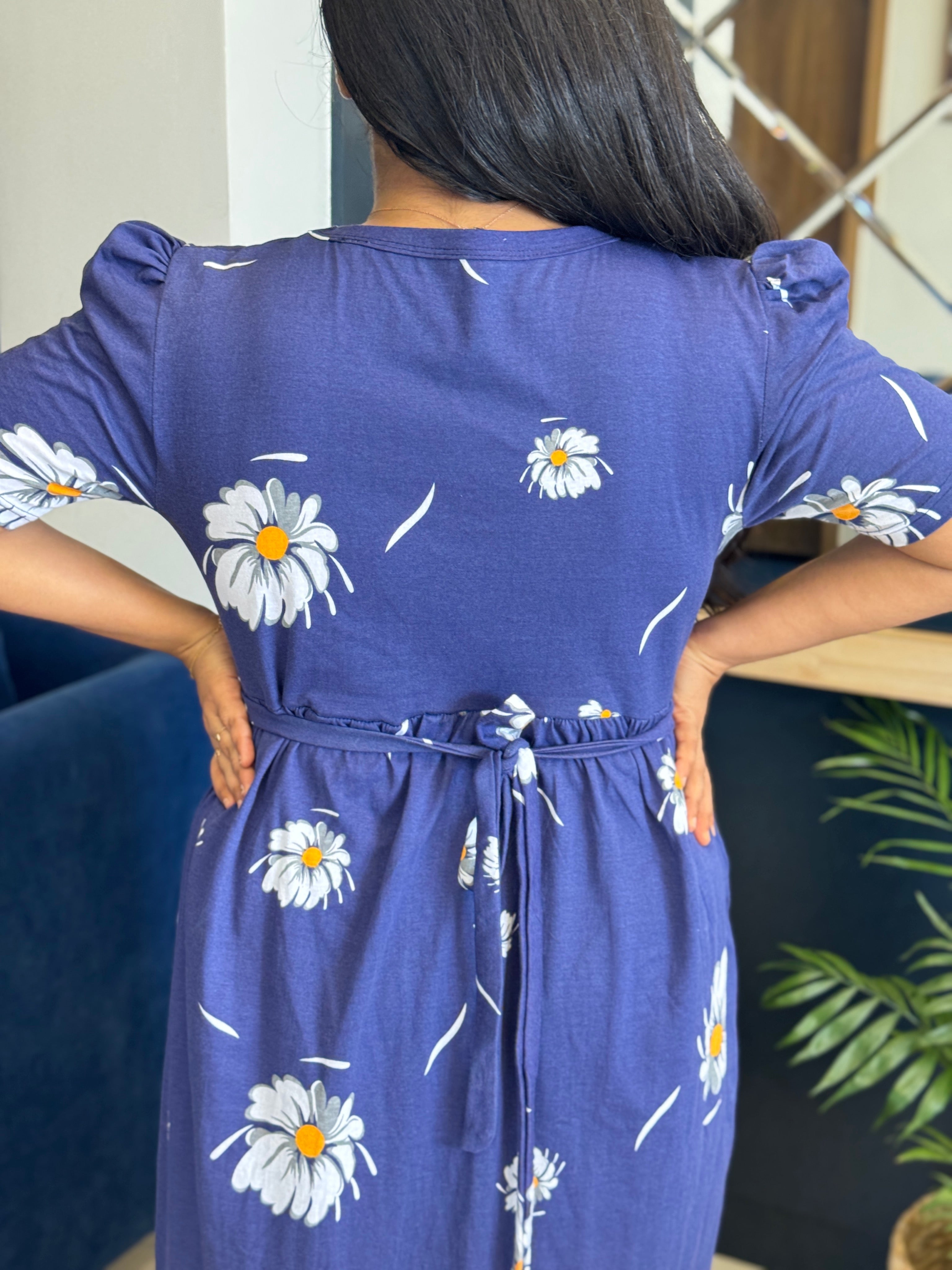 TWMZLF-1012 - Feeding Maternity Wear - White Floral On Blue (Puffed Sleeve)