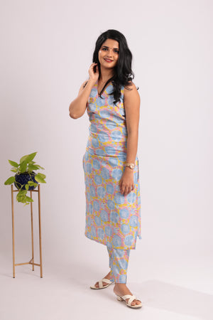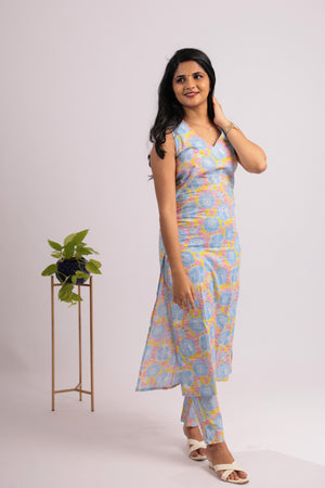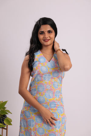 TWKS107 - Pastel Bloom Sleeveless Cotton Kurta Set