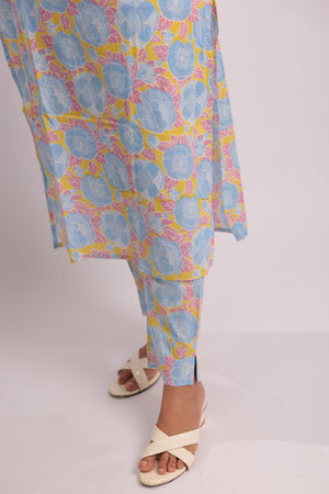 This Pastel Bloom Printed Cotton Kurta Set is designed for effortless grace and everyday comfort. With its sleeveless silhouette, soft pastel floral print, and breathable cotton fabric, it's a wardrobe essential for casual outings or festive brunches.
